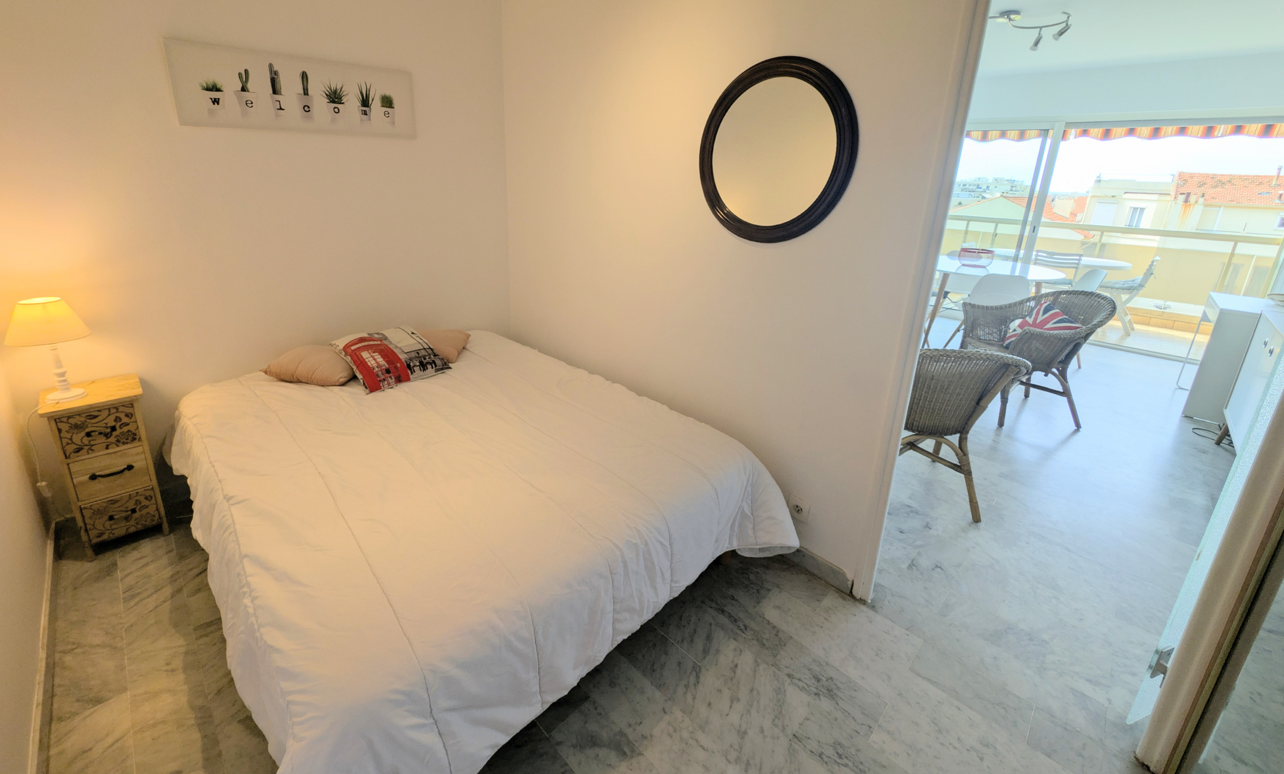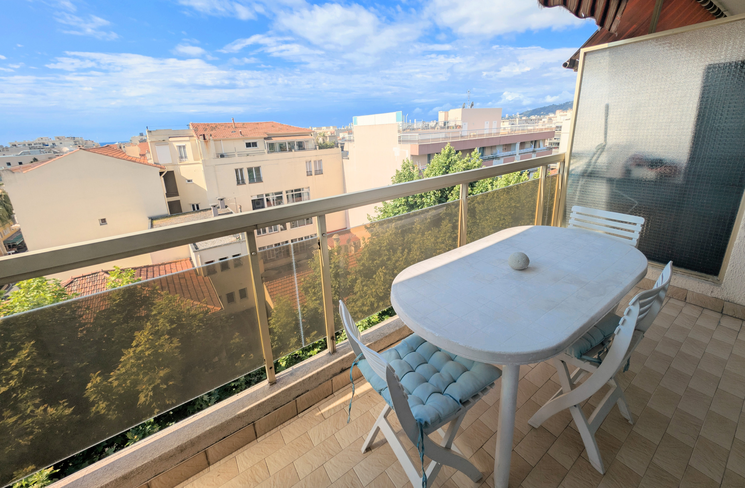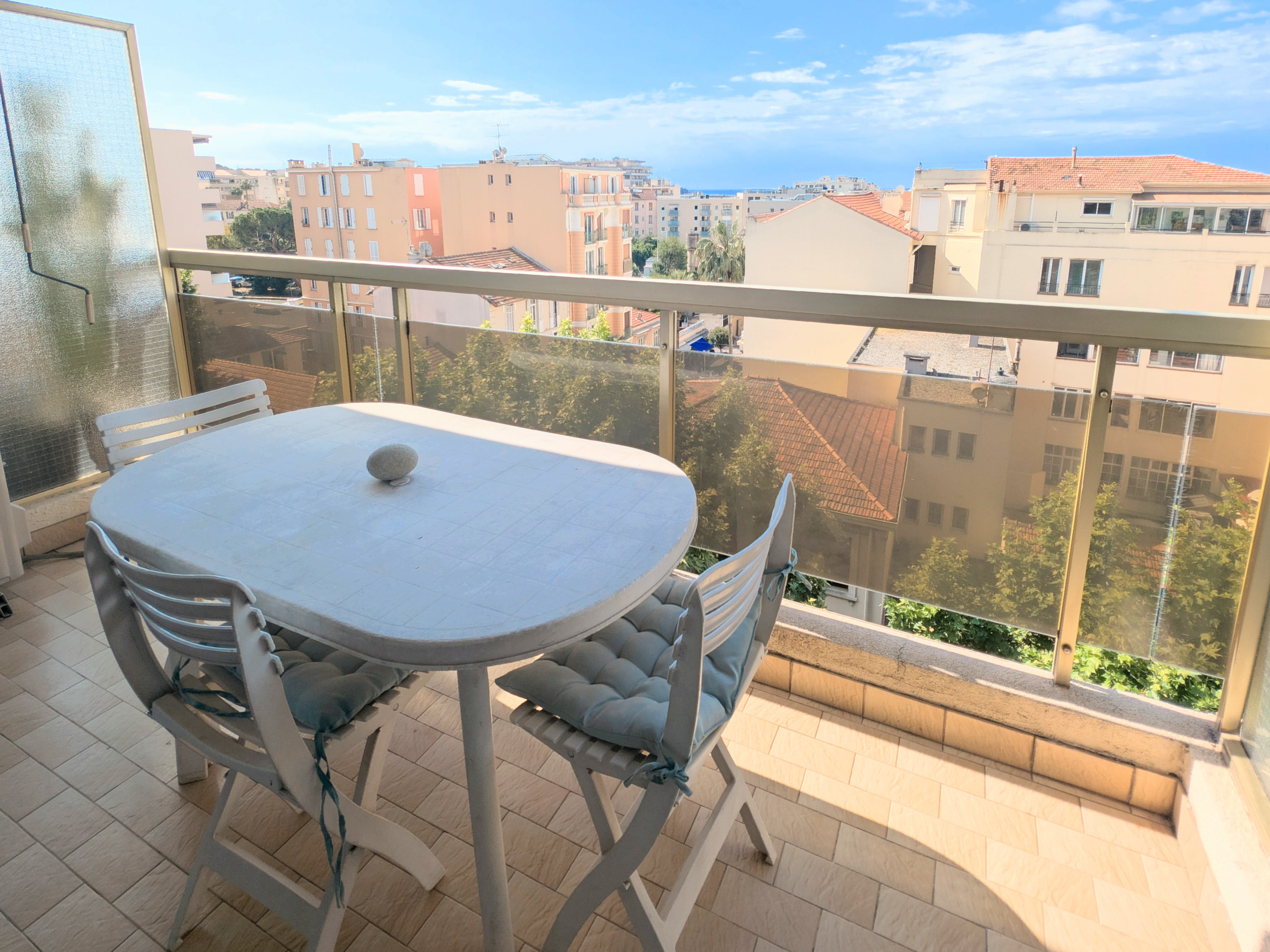Enjoy the French Riviera in this 35m² furnished one-bedroom / cabin studio, located on a high floor with a south-facing terrace, in the heart of Juan-les-Pins.